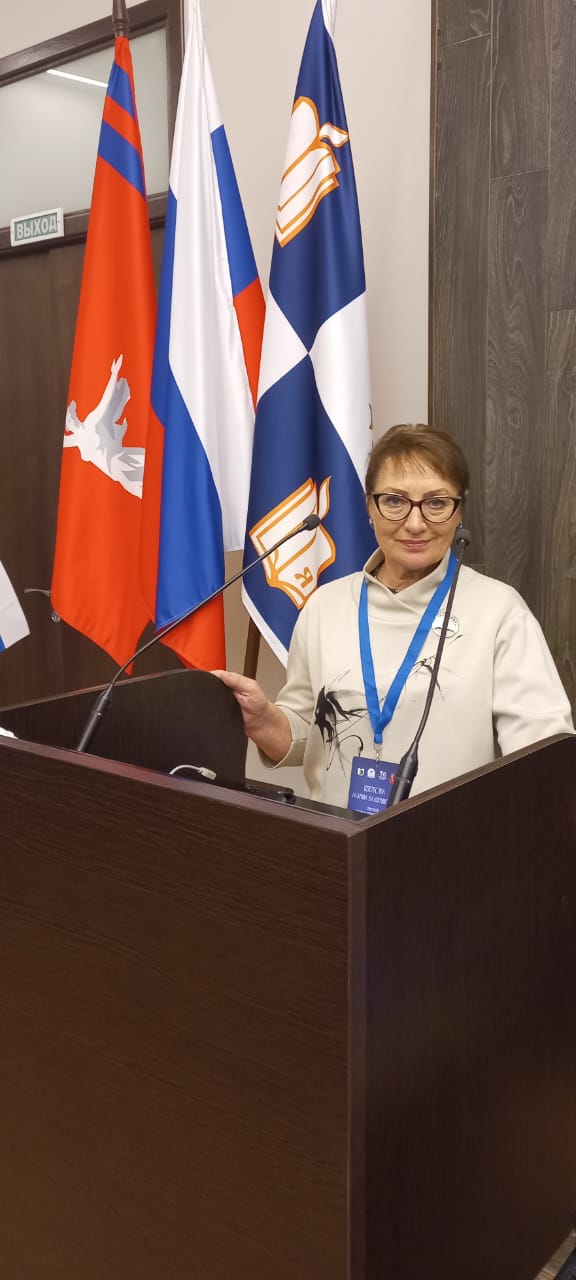 Председатель профорганизации ТвГУ М.В.Цветкова выступает с трибуны съезда ЕАПОУ