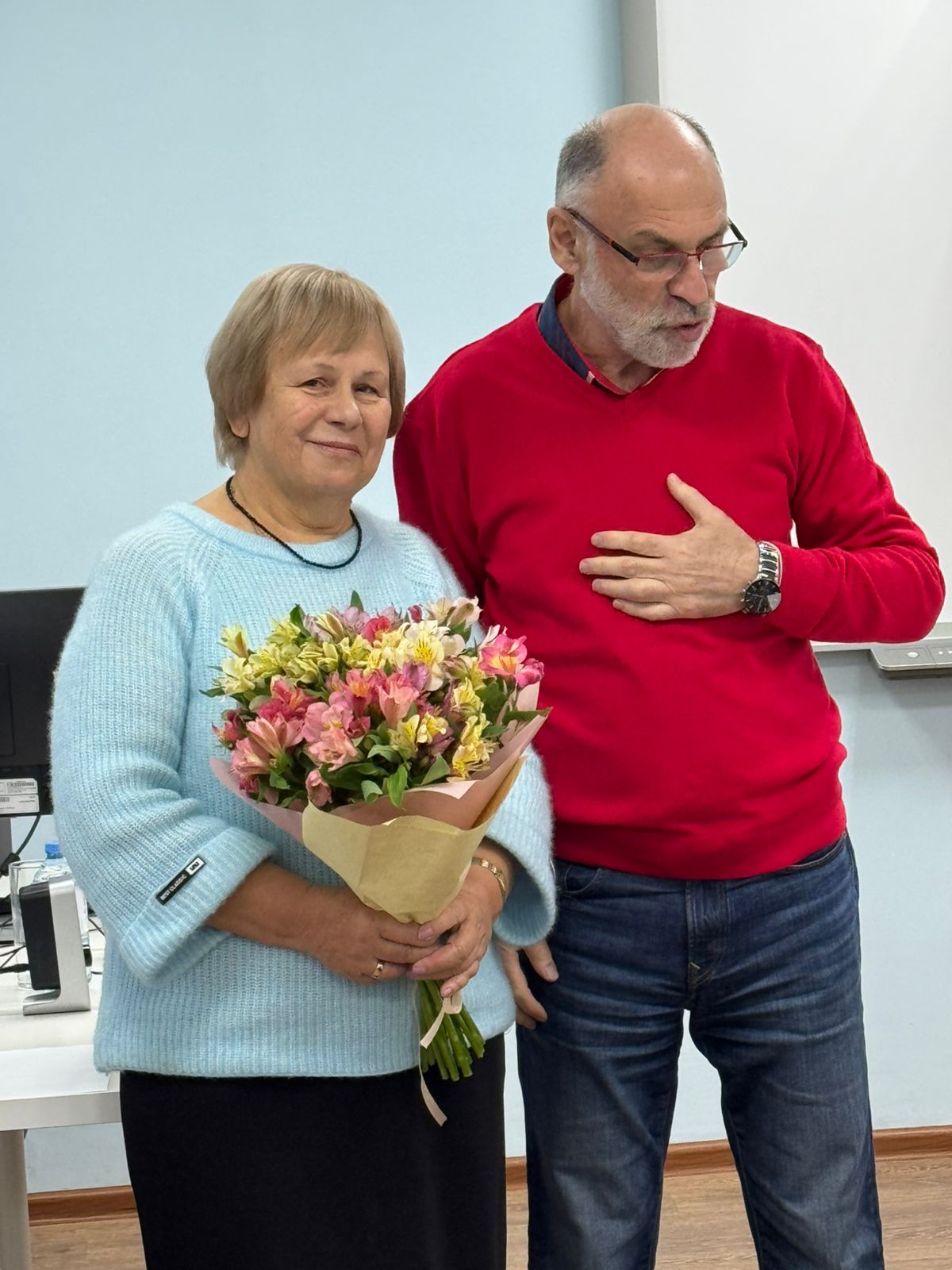 Поздравление с 50-летием профессиональной деятельности доцента кафедры “Социальной работы и педагогики” Института педагогического образования и социальных технологий Ольги Николаевны Борисовой 7 октября 2025 г.