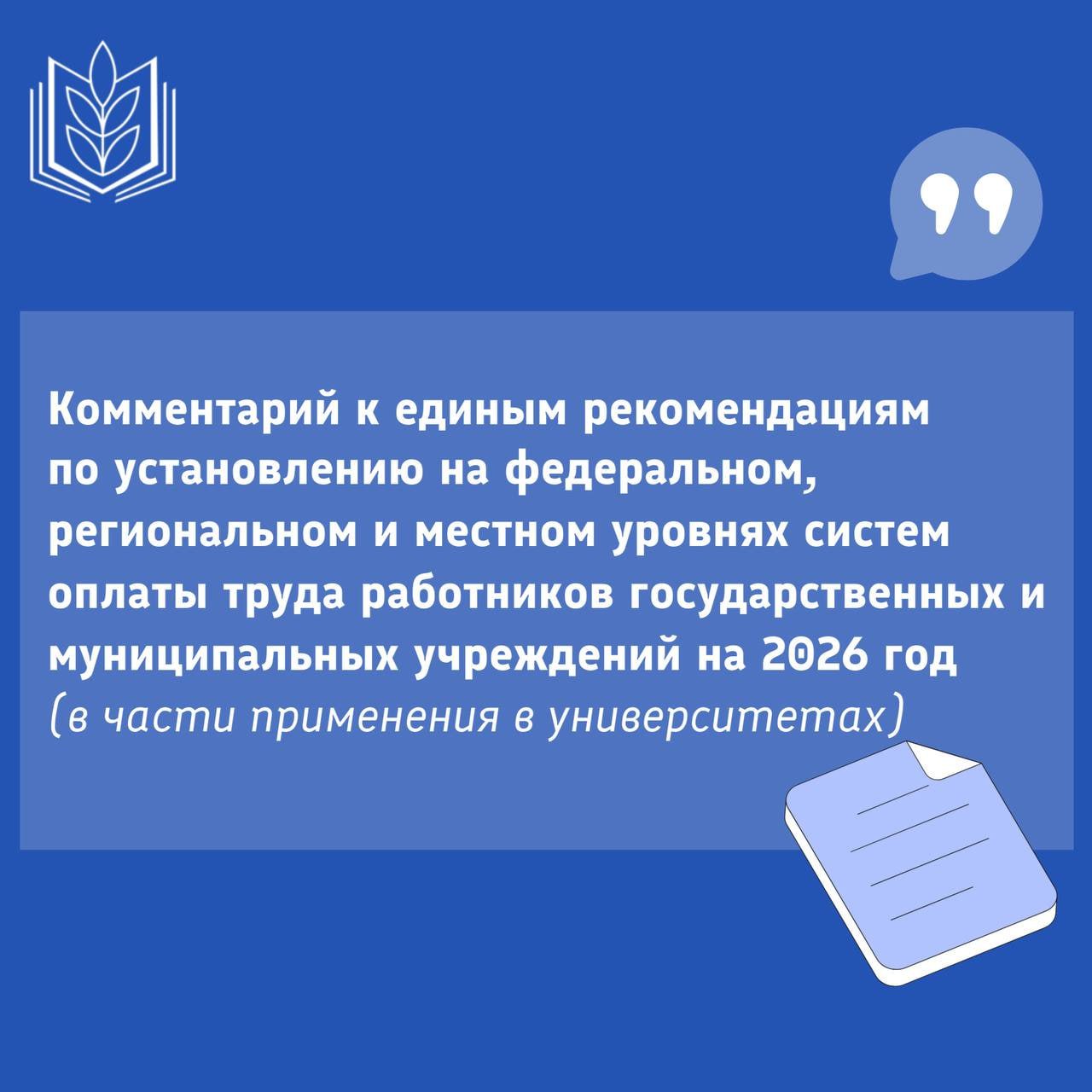 На сайте КСП опубликованы Единые рекомендации по установлению на федеральном, региональном и местном уровнях систем оплаты труда работников государственных и муниципальных учреждений на 2026 год разработаны Российской трехсторонней комиссией по регулированию социально-трудовых отношений в соответствии со статьей 135 Трудового кодекса Российской Федерации (ТК РФ) в целях обеспечения единых подходов к регулированию заработной платы работников организаций бюджетной сферы и утверждены решением РТК от 26 декабря 2025 года https://ksp.eseur.ru/?p=2890